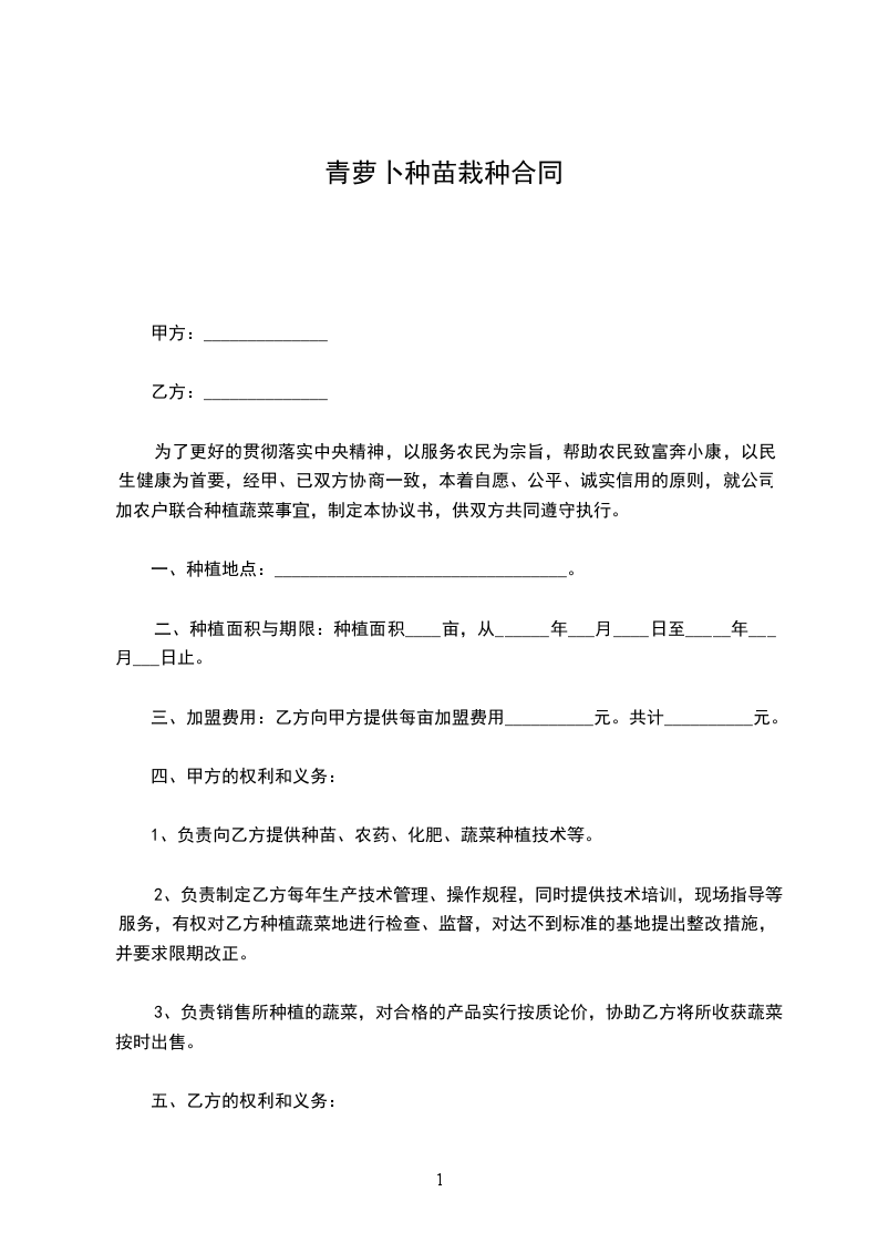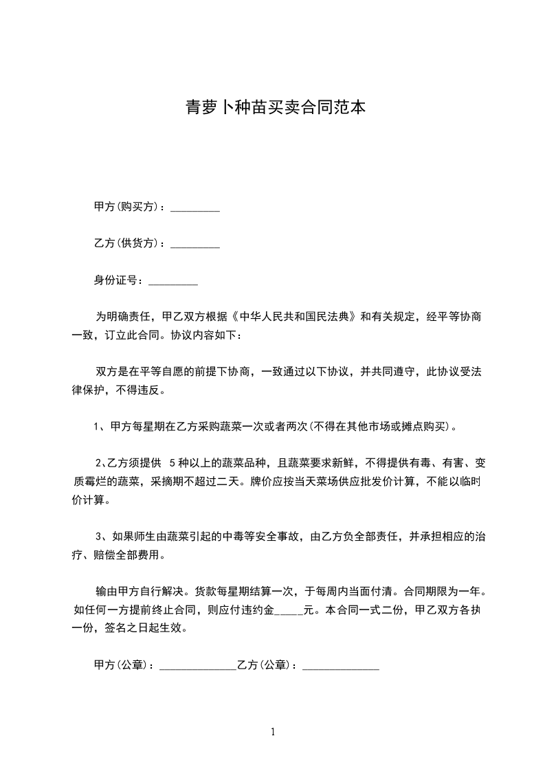 1、甲方每星期在乙方采购蔬菜一次或者两次(不得在其他市场或摊点购买)。