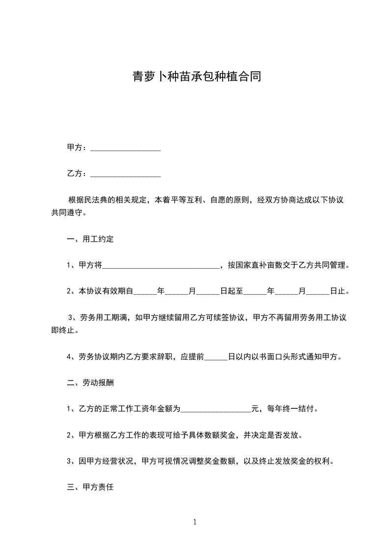 为明确责任,甲乙双方根据《中华人民共和国民法典》和有关规定,经平等协商一致,订立此合同。协议内容如下: