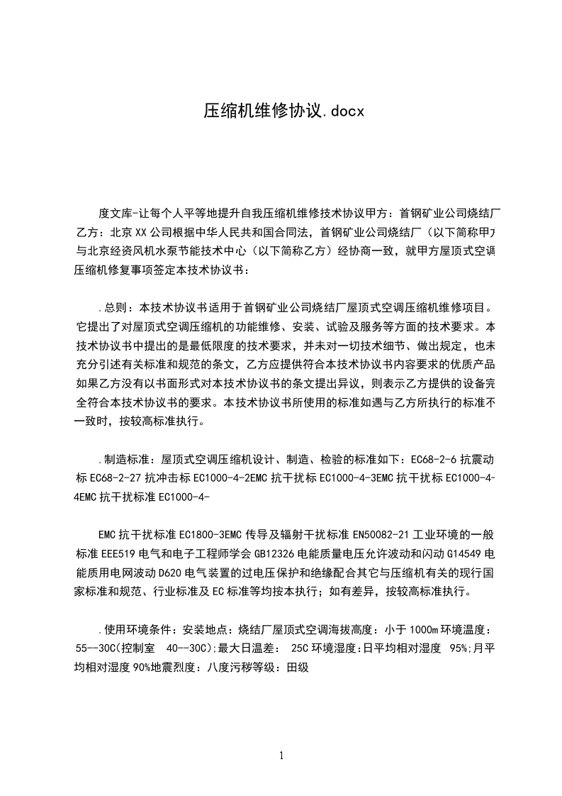 3.4紧急情况停车遇有下列情况之一时,应紧急停车:1)润滑油中断;2)冷却水中断;3)轴承温度超标;4)压缩气突然超温超压;5)声音突然异常,查不到原因;6)突发性严重振动,查不到原因;7)主零、部件及管道断裂;16/16、活塞压缩机检修规程1)操作规程规定的其他紧急停车条件。4.检修周期和检修内容4.1检修周期检修周期见表4表4检修类别小修中修大修检修周期(月)3~66~1224~364.2检修内容4.