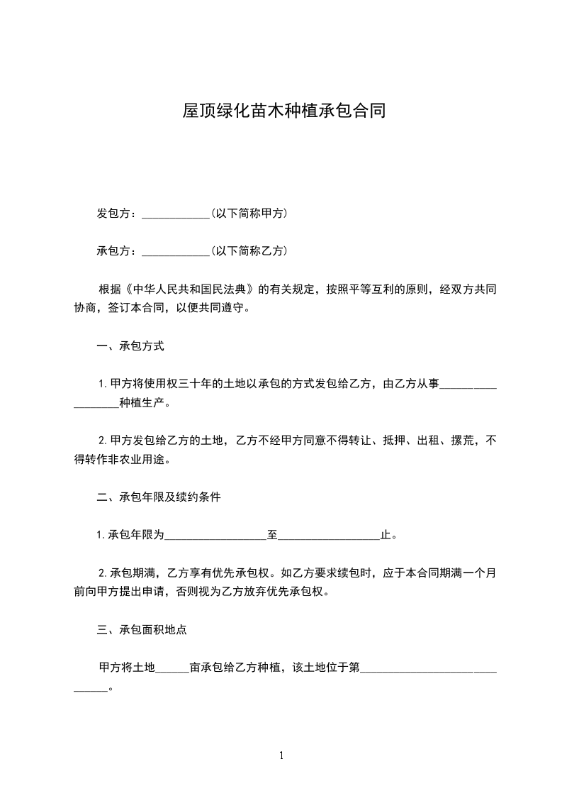 绿化苗木苗木种植承包合同