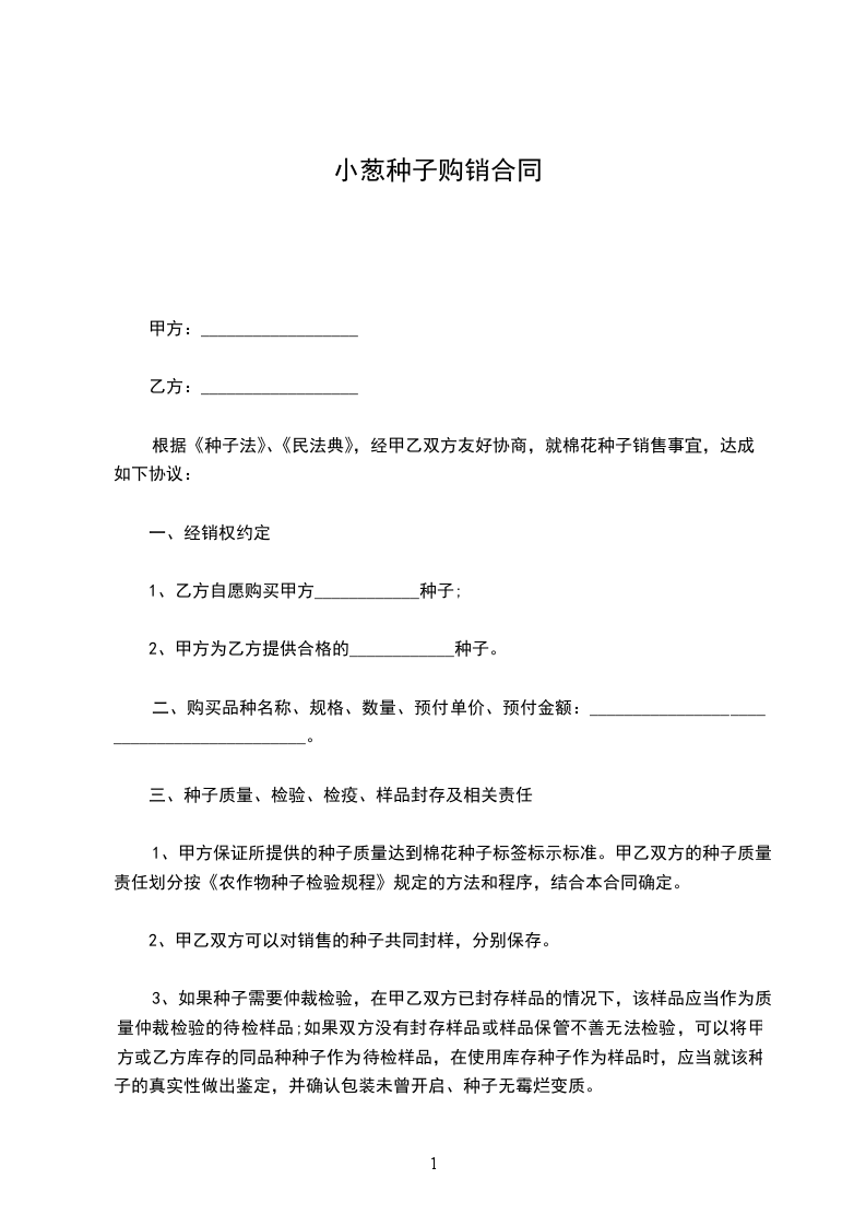 二、销售量:总代理与一级经销商合计本年度销售:__________________种子不得少于____________斤,即总代理销售量为总量____________斤减去一级经销商销量(____________斤已签订合同),应为____________斤以上。