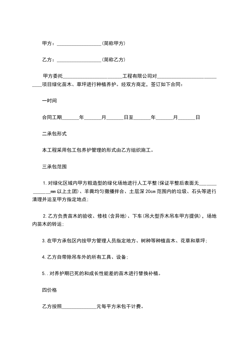 甲方委托乙方对__________工程进行绿化改造。经双方协商一致,签订如下合同: