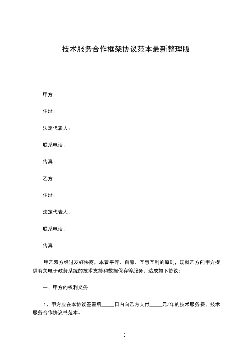 1、甲方应在本协议签署后_____日内向乙方支付_____元/年的技术服务费,技术服务合作协议书范本。
