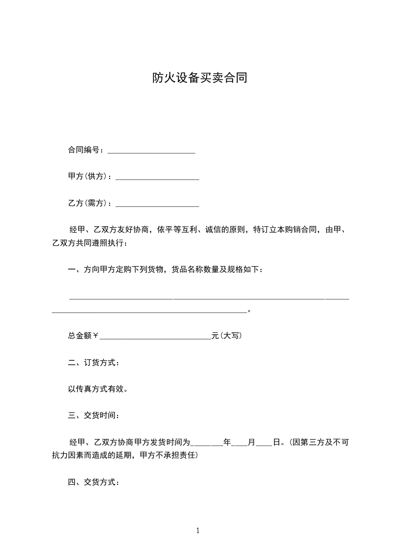 一、方向甲方定购下列货物,货品名称数量及规格如下: