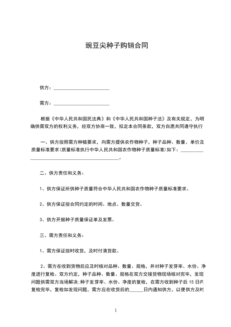 一、根据_____________________方案,供方积极组织需方草种货源,双方本着诚实守信、认真实施好项目为基础,服务地方______________业发展为目的签定本合同,共同遵守: