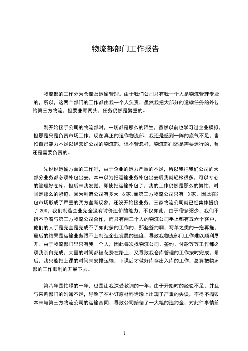 同时建立一个高效与高质量的物流团队,为在以终端为王的销售模式中,提供更快捷、及时的物流服务,以商品满足、快捷的物流反应、低成本控制(费用、商品周转等)为部门目标,为创造更大的利润价值。