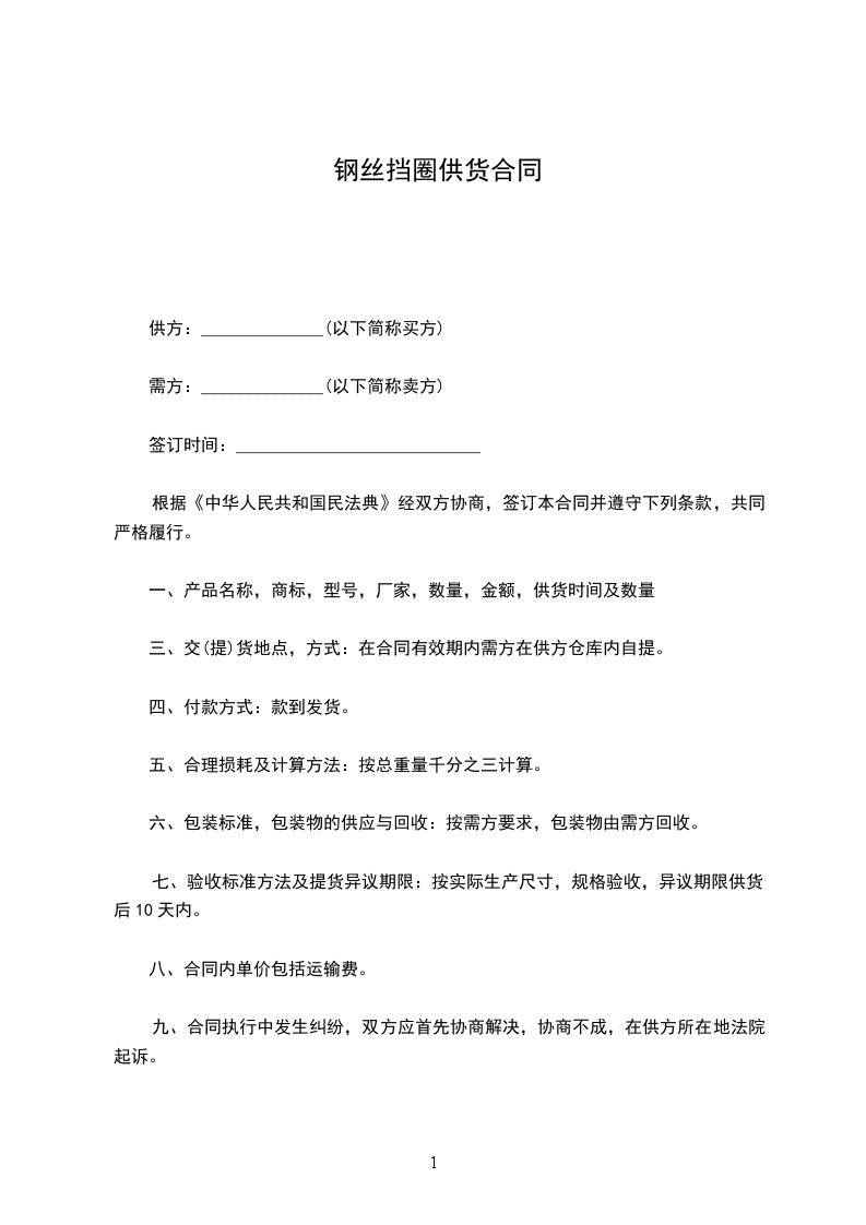 九、合同执行中发生纠纷,双方应首先协商解决,协商不成,在供方所在地法院起诉。