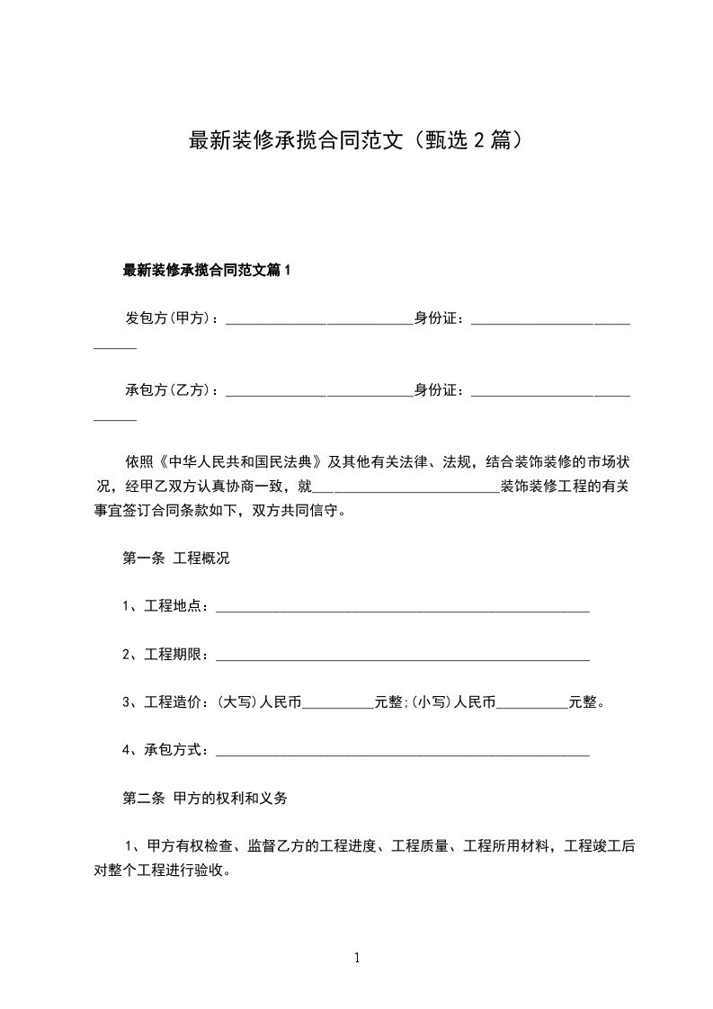 依照《中华人民共和国民法典》及其他有关法律、法规,结合装饰装修的市场状况,经甲乙双方认真协商一致,就__________________________装饰装修工程的有关事宜签订合同条款如下,双方共同信守。