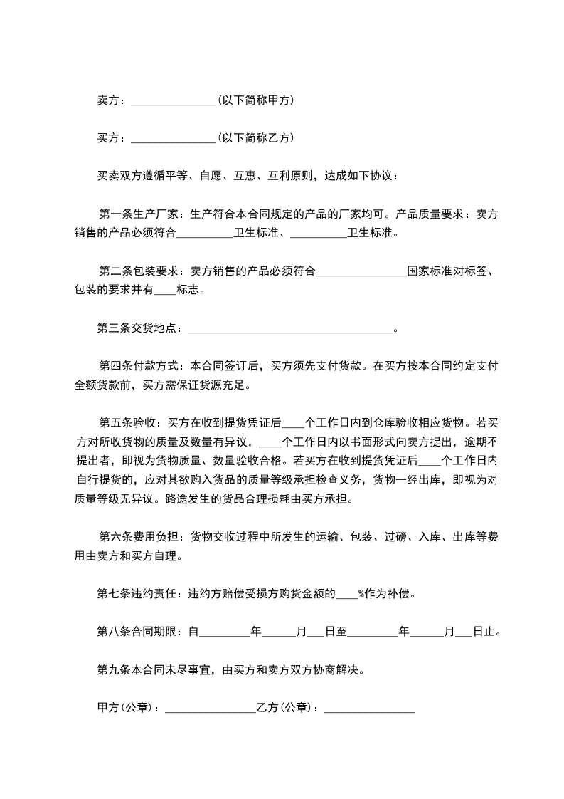 6、协议期间如发生乙方法人变更等情景时,应提前通知并将更改后的有效证件传至甲方备案,如乙方停业、外出等临时情景出现送货有变动的,要及时安排好临时接替人员,提前通知甲方,并将转交代理人员联系方式告知甲方,以坚持供货需要。