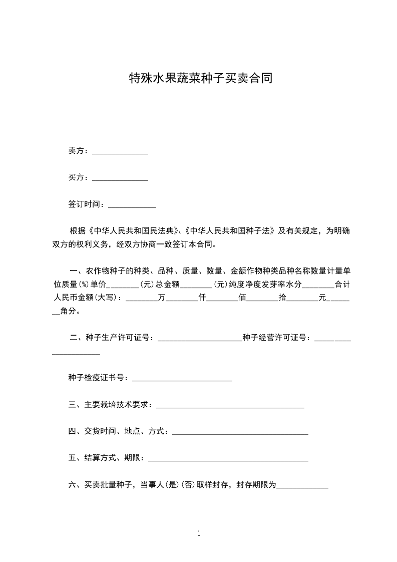 根据《中华人民共和国民法典》、《中华人民共和国种子法》及有关规定,为明确双方的权利义务,经双方协商一致签订本合同。
