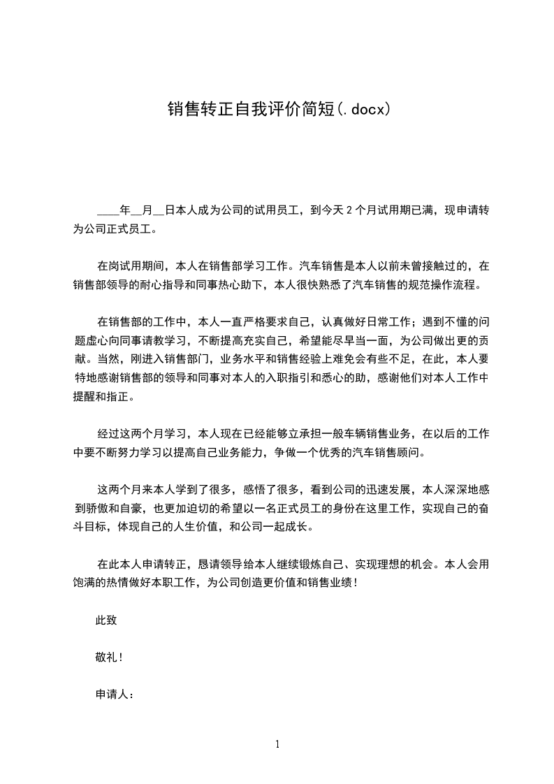 在此我申请转正,恳请领导给我继续锻炼自我、实现理想的机会。我会用饱满的热情做好本职工作,为公司创造更大价值和销售业绩!