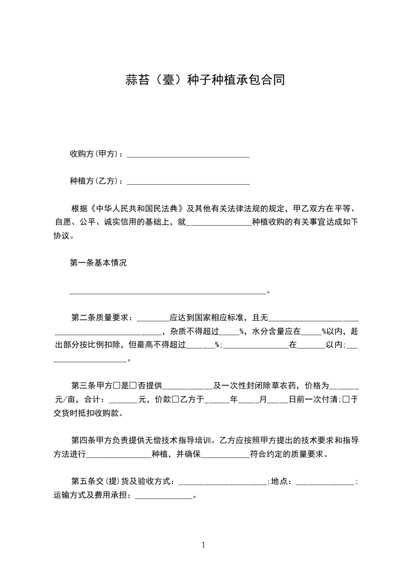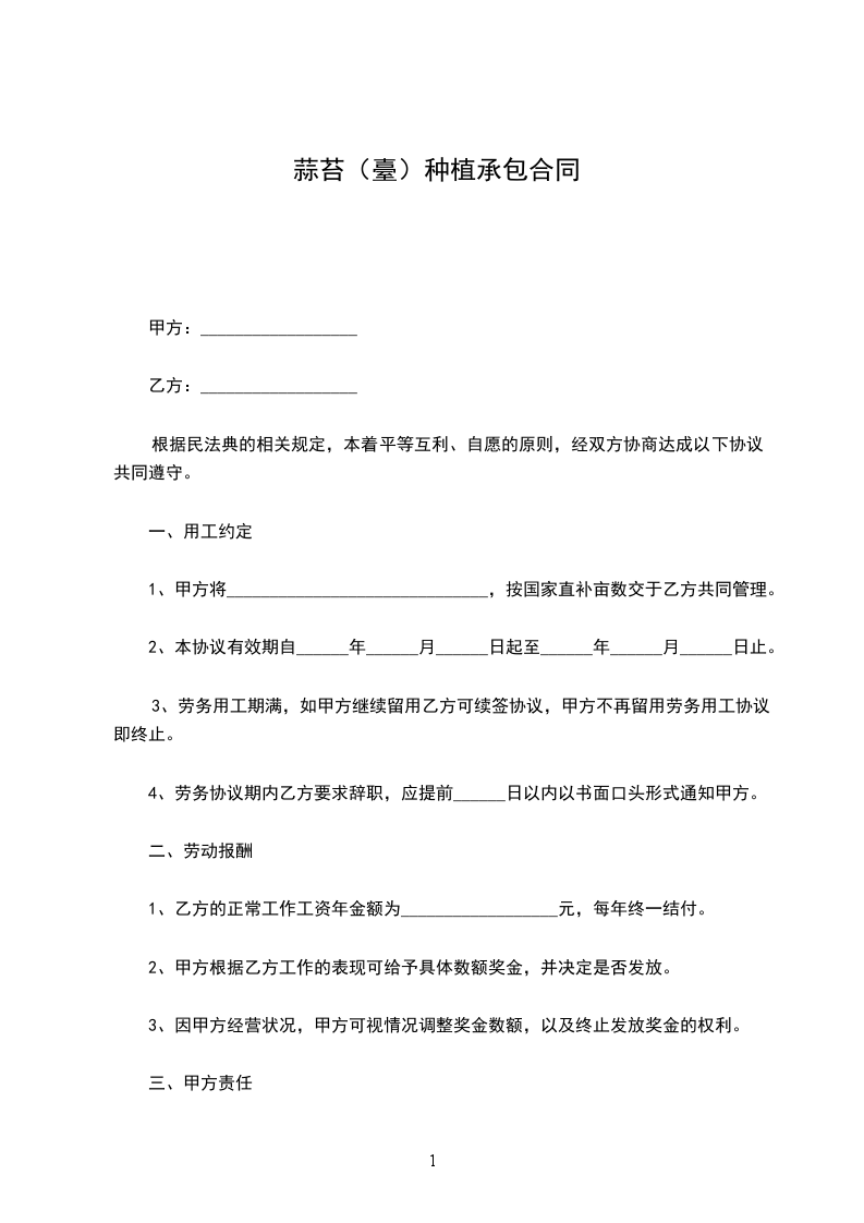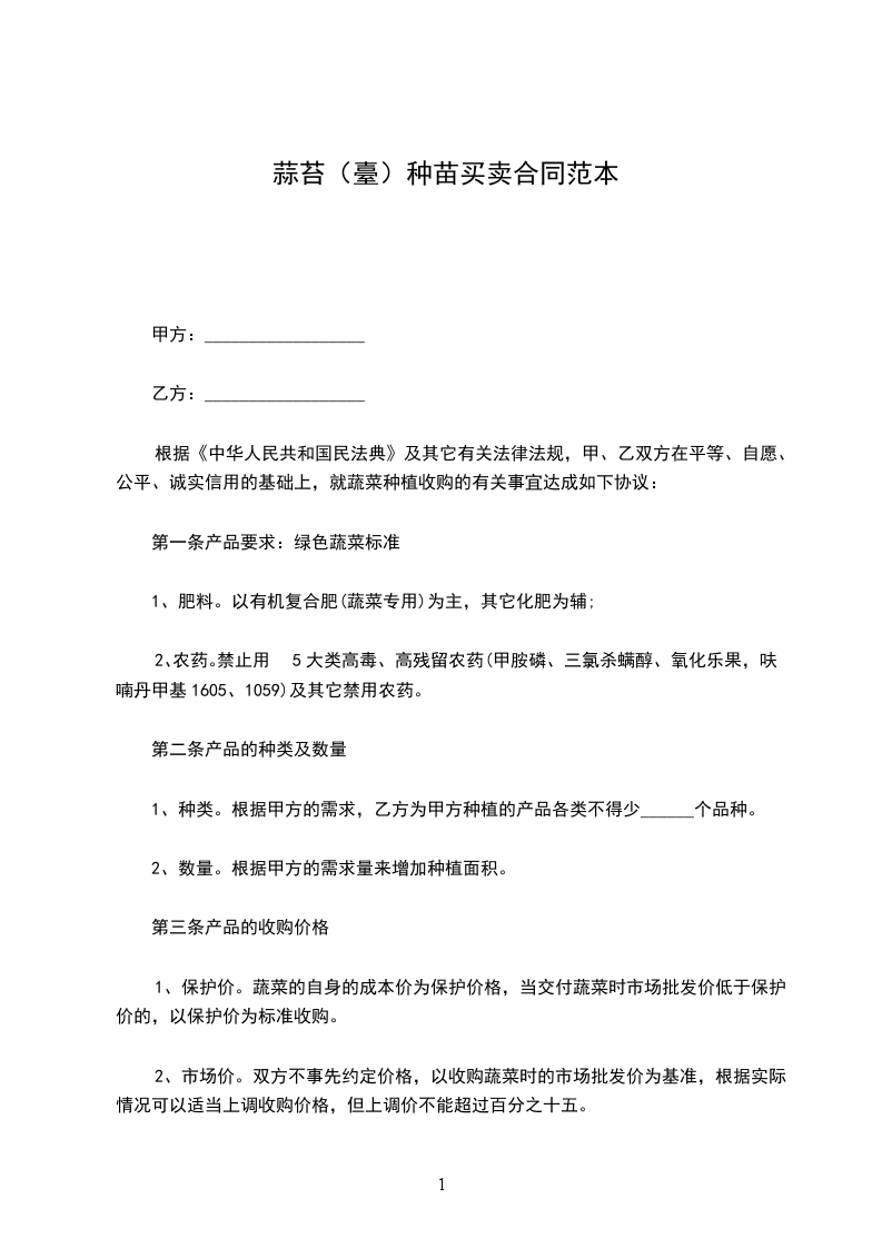 根据《中华人民共和国民法典》及其它有关法律法规,甲、乙双方在平等、自愿、公平、诚实信用的基础上,就蔬菜种植收购的有关事宜达成如下协议:
