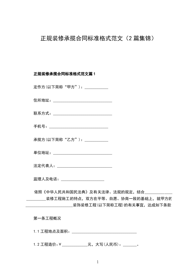 1.2工程造价:¥_____________元,大写(人民币):_______。