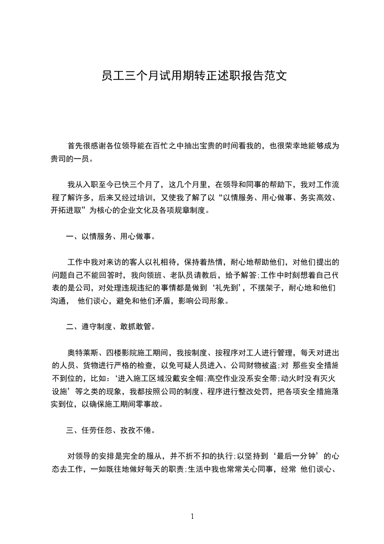 我从入职至今已快三个月了,这几个月里,在领导和同事的帮助下,我对工作流程了解许多,后来又经过培训,又使我了解了以“以情服务、用心做事、务实高效、开拓进取”为核心的企业文化及各项规章制度。