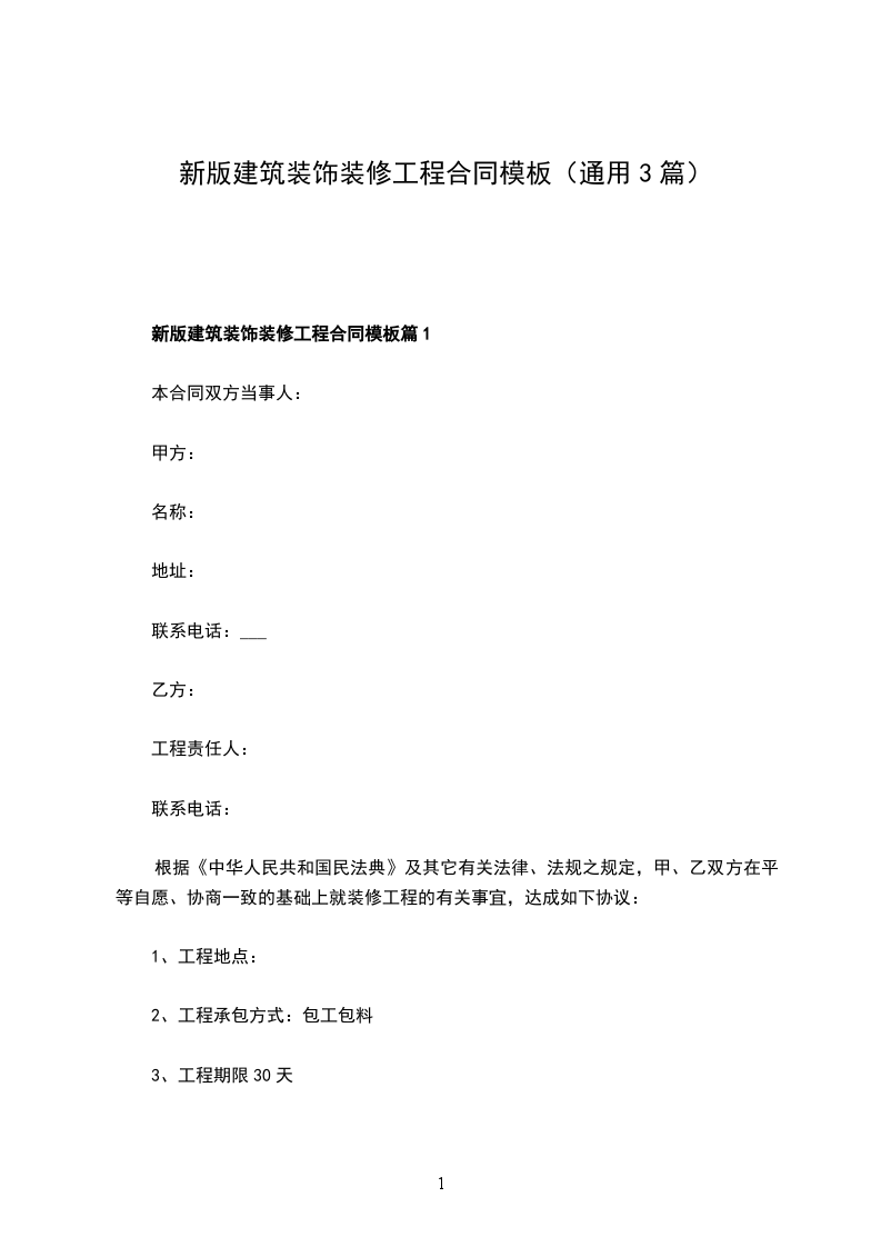 新版建筑装饰装修工程合同模板篇2