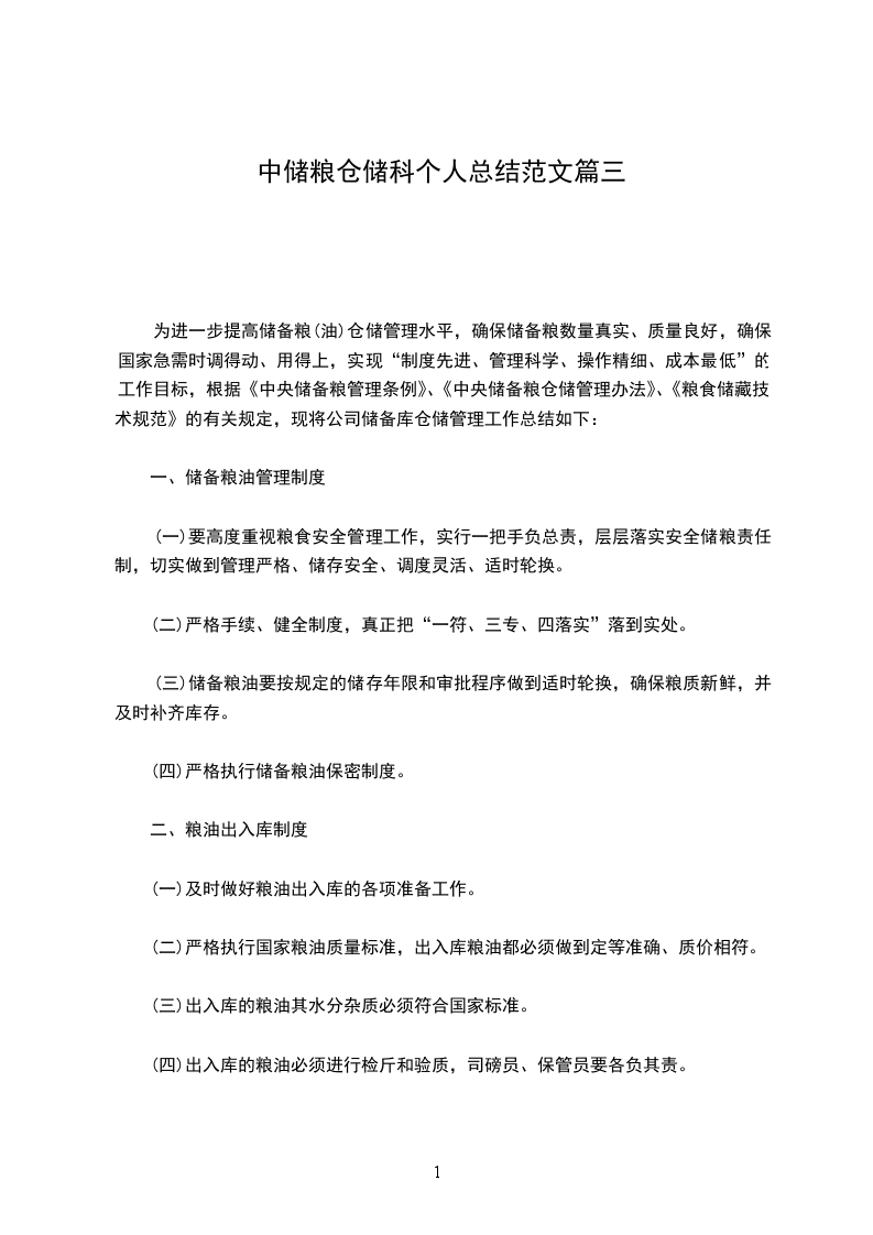 一、储备粮油管理制度