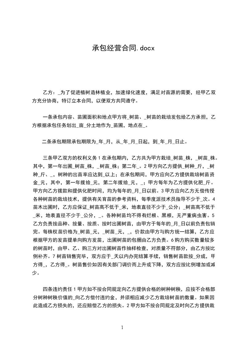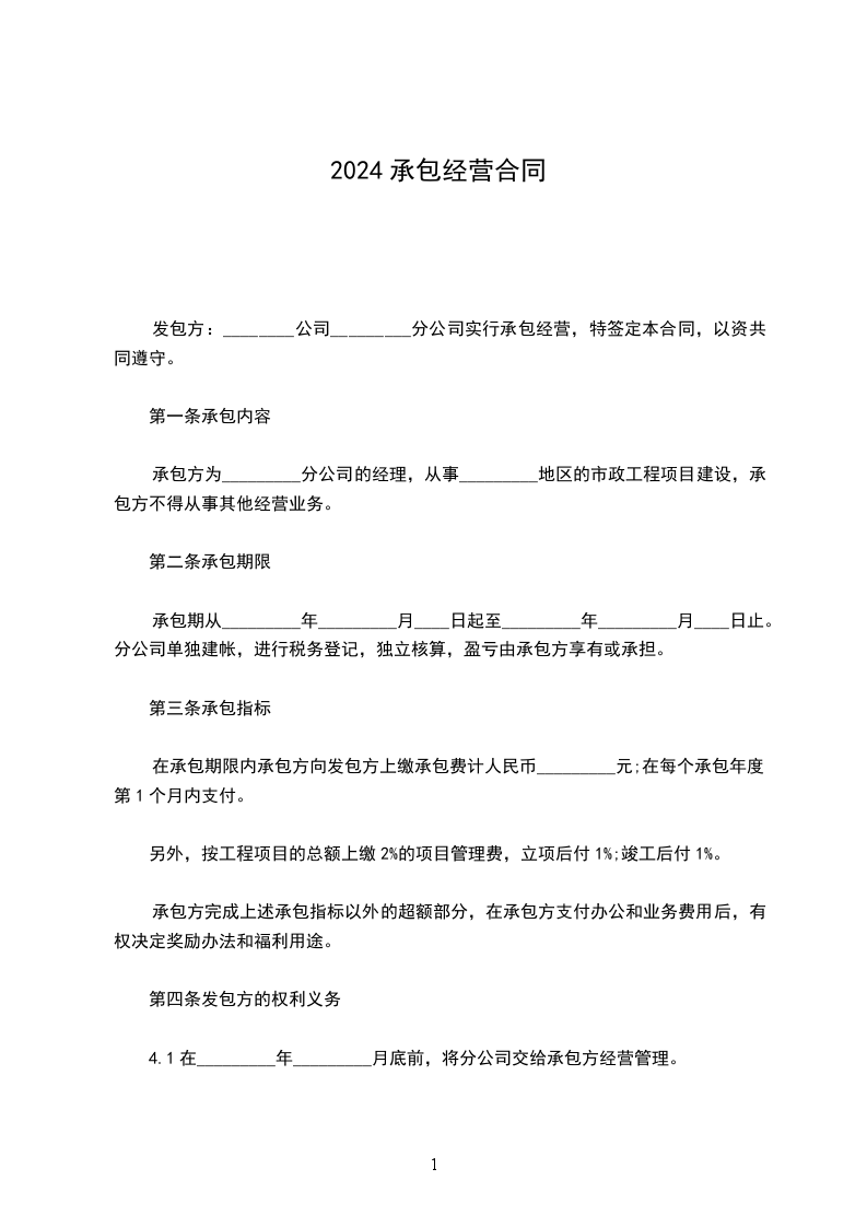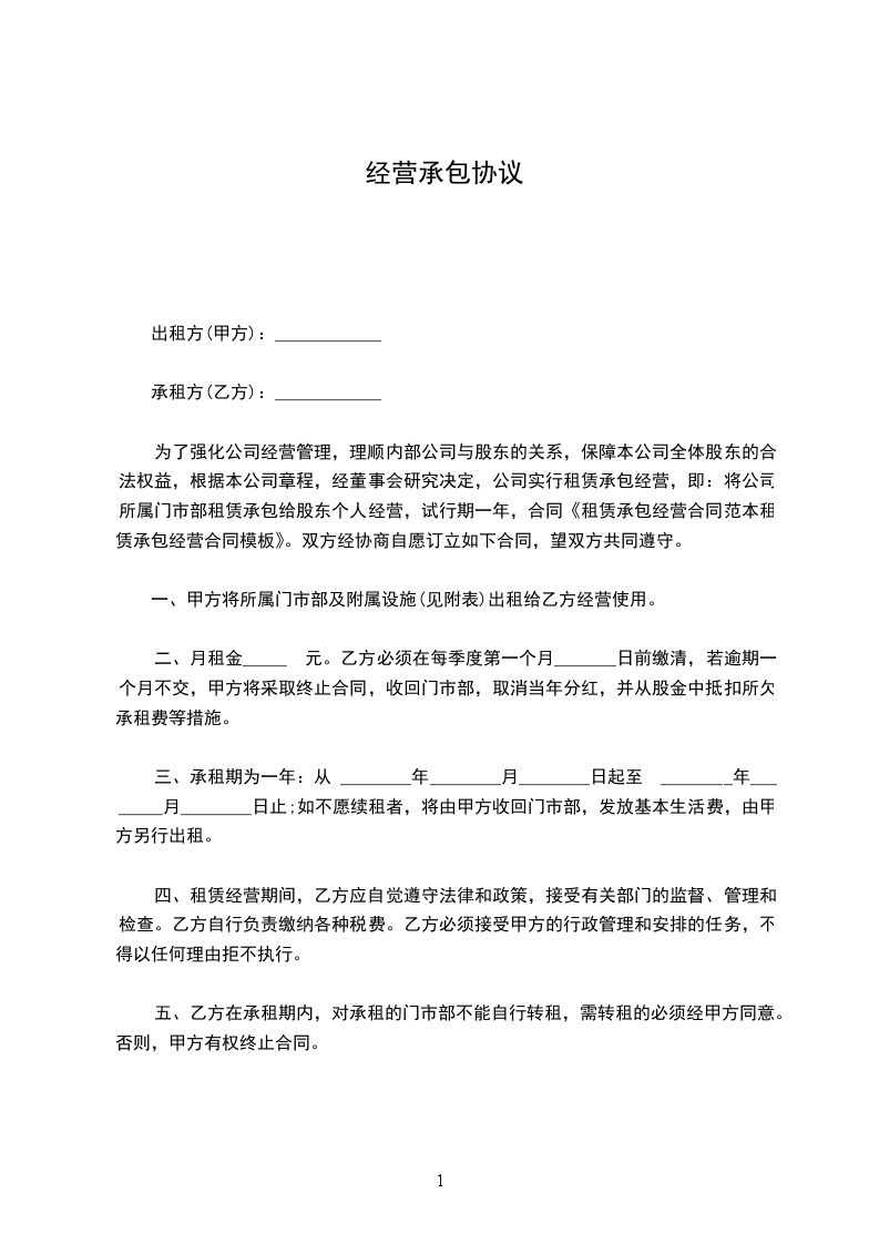 承包金每月(大写)_____________________元。