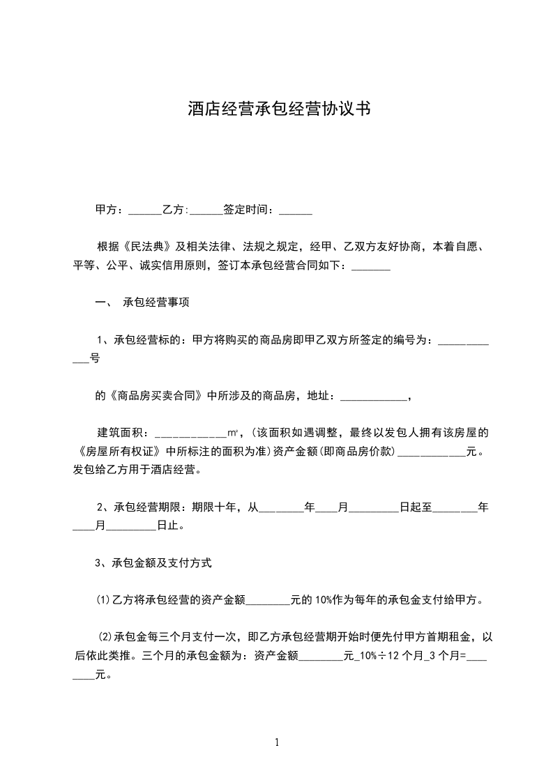 第四条 承包饭店的经营范围__________________________