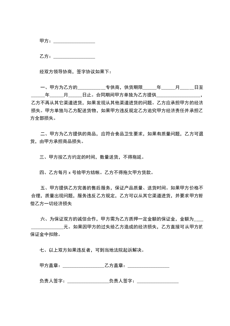 2、乙方年销售任务为________________________,每月最低_______________元。乙方在销售期间应按月、季度的销售计划进货。