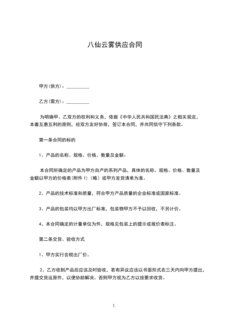 第一条合同的标的