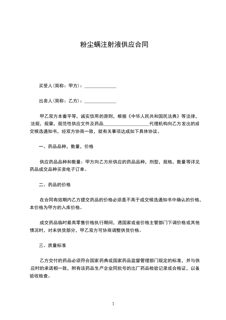粉尘螨注射液采购合同范本