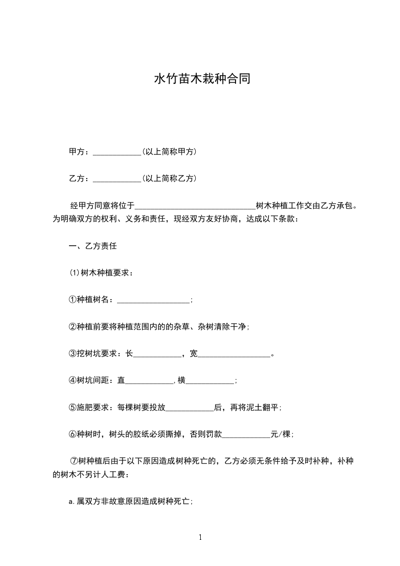 百合竹苗木栽种合同
