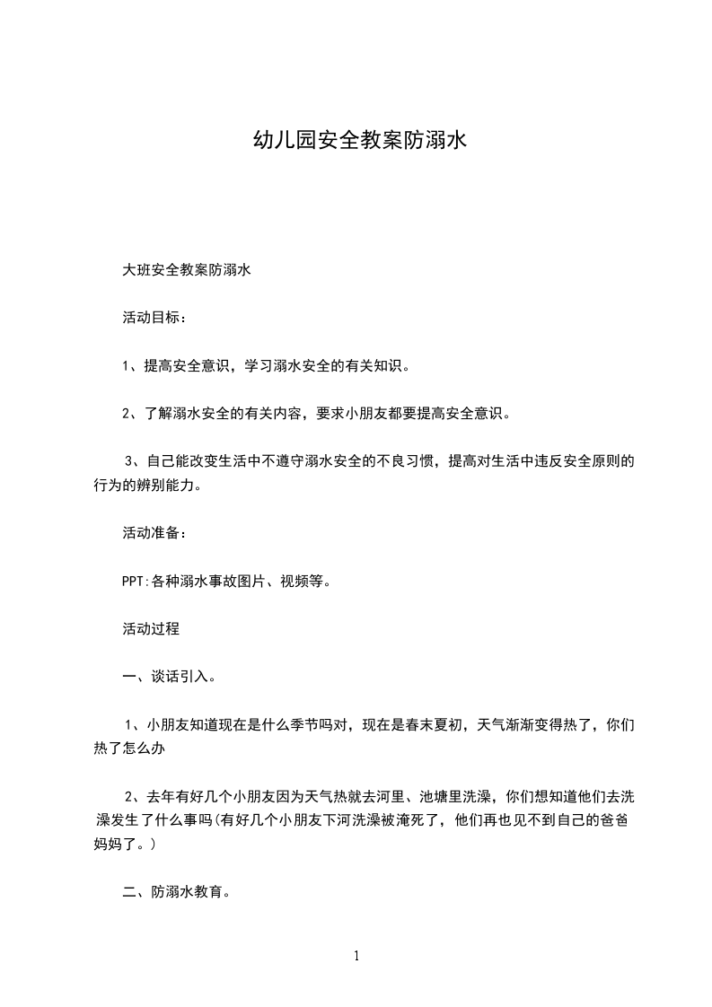 大班安全教案防溺水