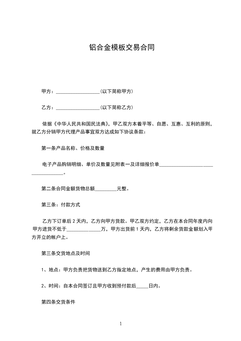 铝合金模板交易合同