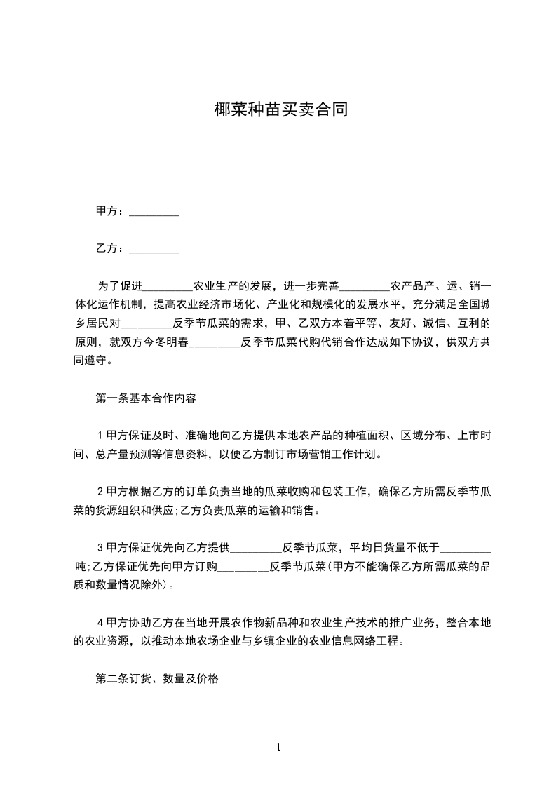 为了促进_________农业生产的发展,进一步完善_________农产品产、运、销一体化运作机制,提高农业经济市场化、产业化和规模化的发展水平,充分满足全国城乡居民对_________反季节瓜菜的需求,甲、乙双方本着平等、友好、诚信、互利的原则,就双方今冬明春_________反季节瓜菜代购代销合作达成如下协议,供双方共同遵守。