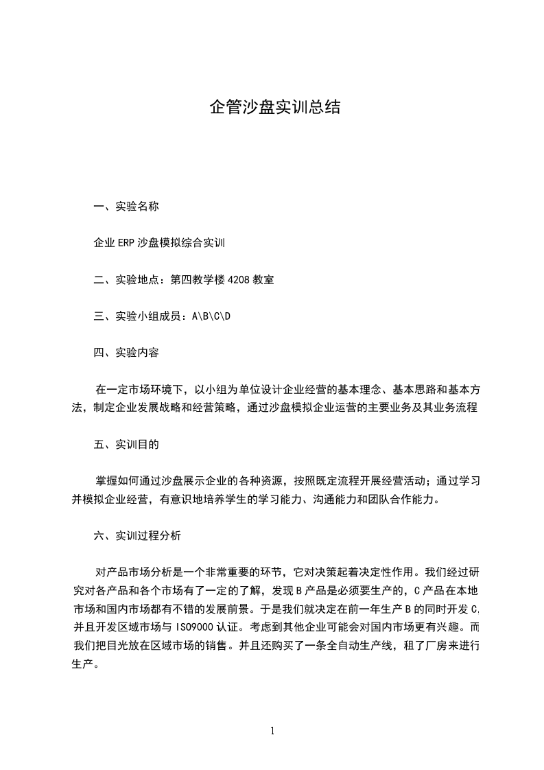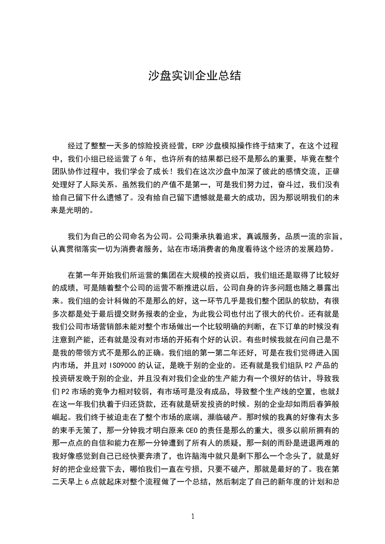 通过短短的八周沙盘实训,让我感受到了团队协作运营的重要性。好的企业必须有好的运营团队在操作,好团队也应该有一个好的操舵手。我在这次实训中总结出: