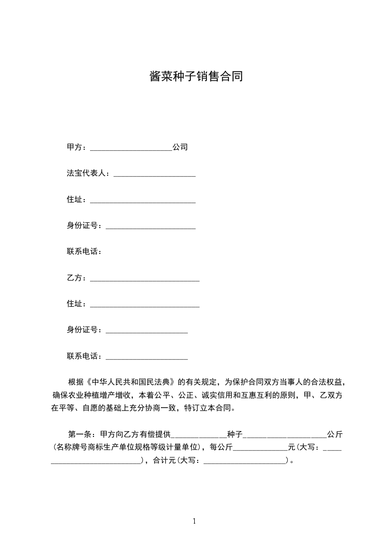 第一条:甲方向乙方有偿提供______________种子_____________________公斤(名称牌号商标生产单位规格等级计量单位),每公斤______________元(大写:____________________________),合计元(大写:_____________________)。