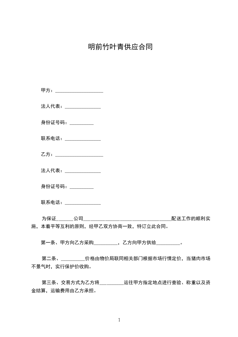 供货方:________________(以下简称甲方)