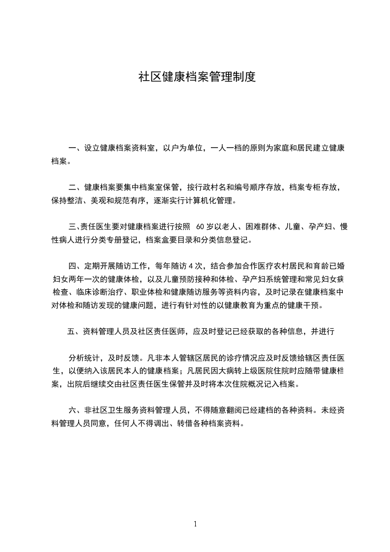 一、设立健康档案资料室,以户为单位,一人一档的原则为家庭和居民建立健康档案。