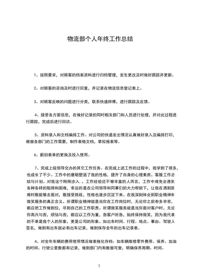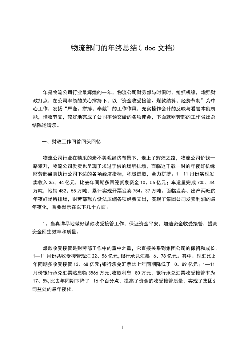 岁月如烟, 年已经离去,回顾过去一年的工作,物流部在公司的得力领导及各部门的配合下,部门的各项工作都在有条不紊的开展,并完成了上年度的工作计划,但在部门日常的各项管理中,仍存在很多的问题,需要不断的改进与完善。现将本部门岗位职责、 年部门主要工作完成情况、存在的问题及 年的工作计划报告如下: