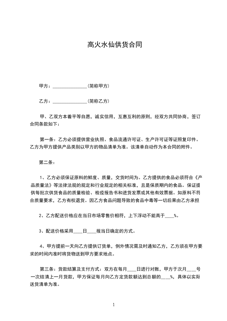 高级水仙供应合同