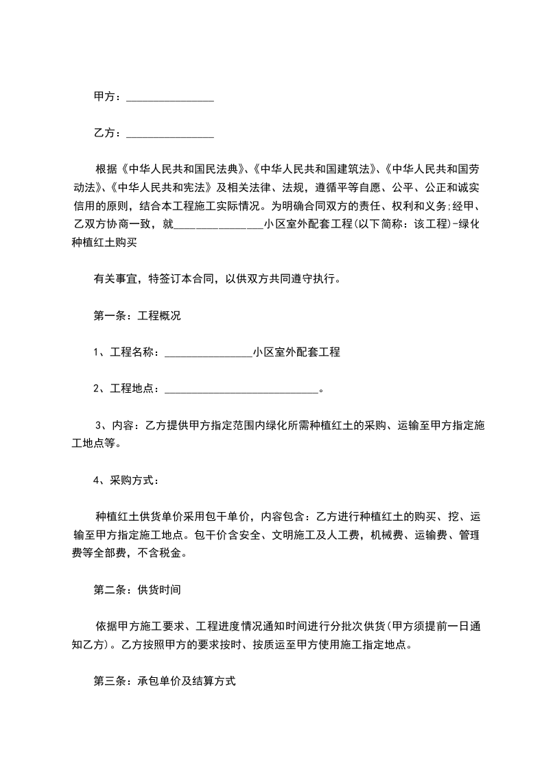 4、草坪种植由乙方提供草籽及草坪布,组成色带所需草花由乙方提供。