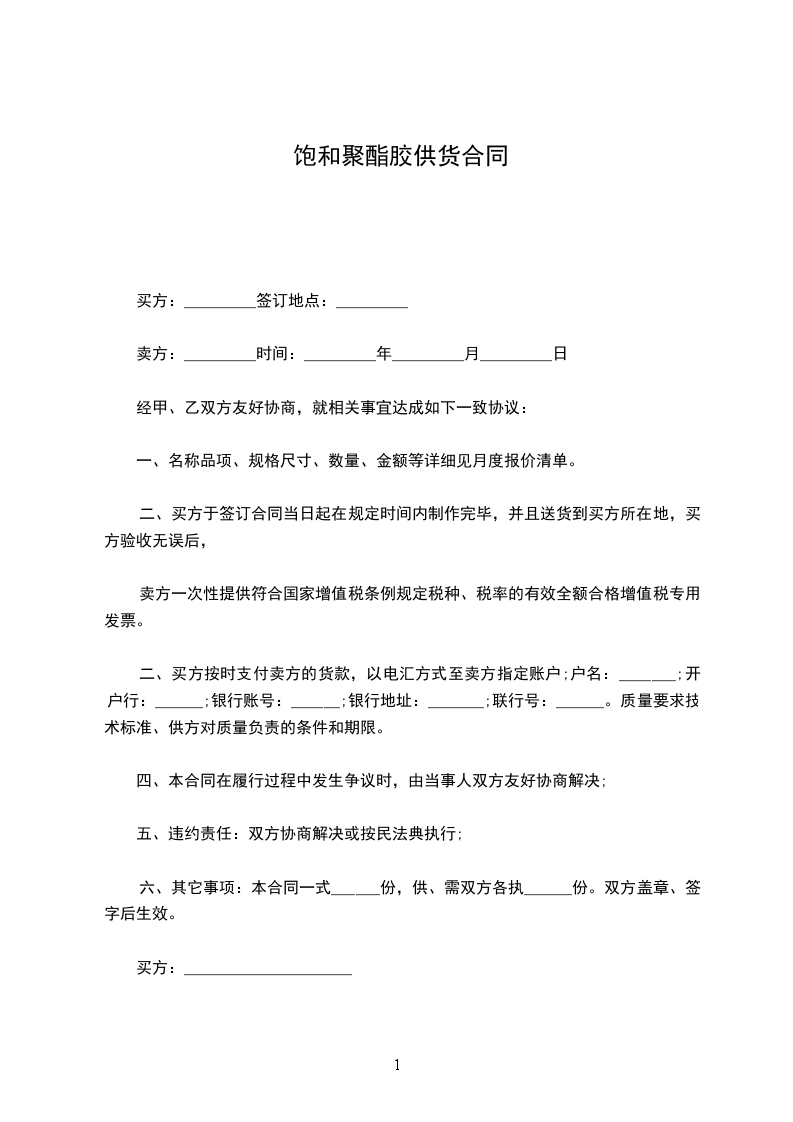 六、其它事项:本合同一式______份,供、需双方各执______份。双方盖章、签字后生效。