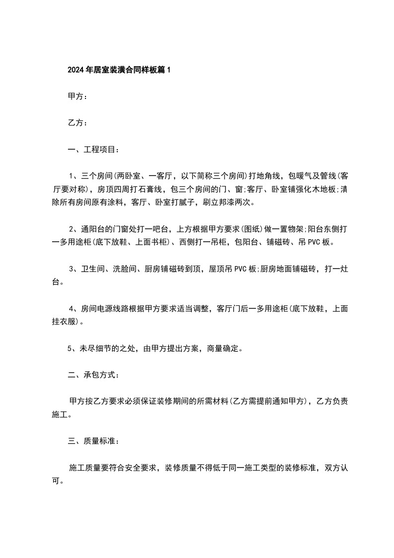 2024年居室装潢合同样板篇1
