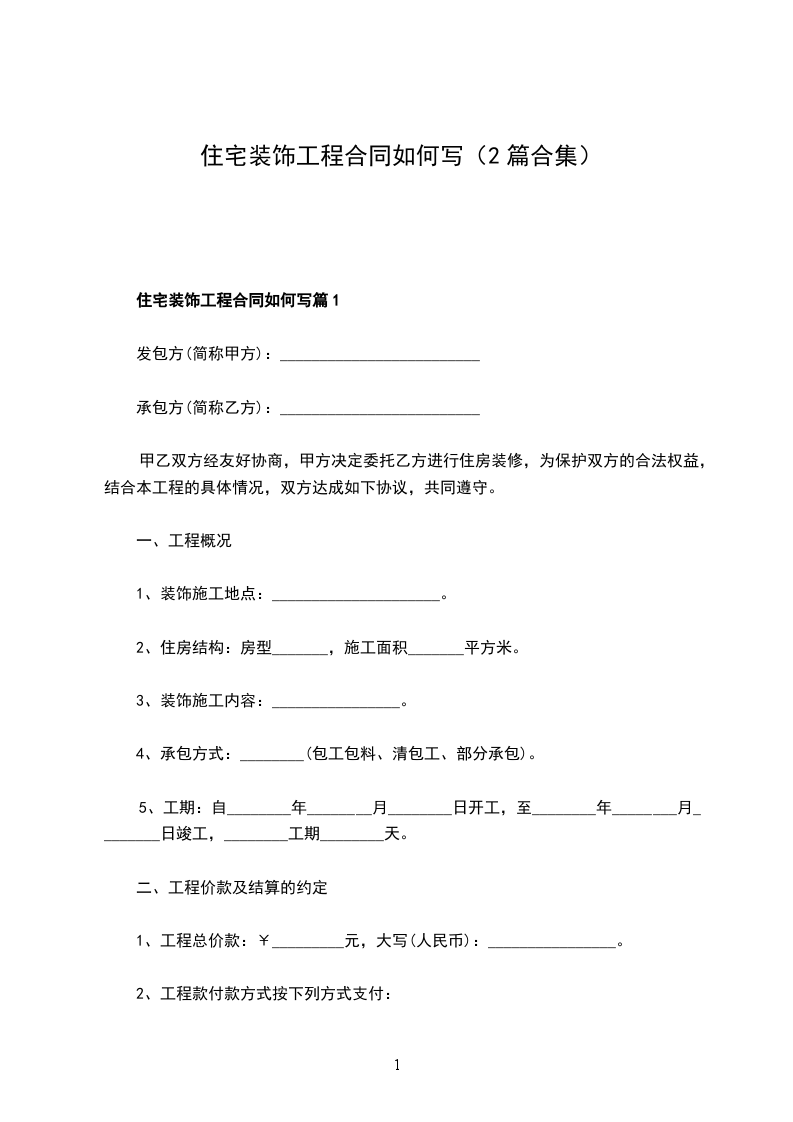 1、工程总价款:¥_________元,大写(人民币):________________。