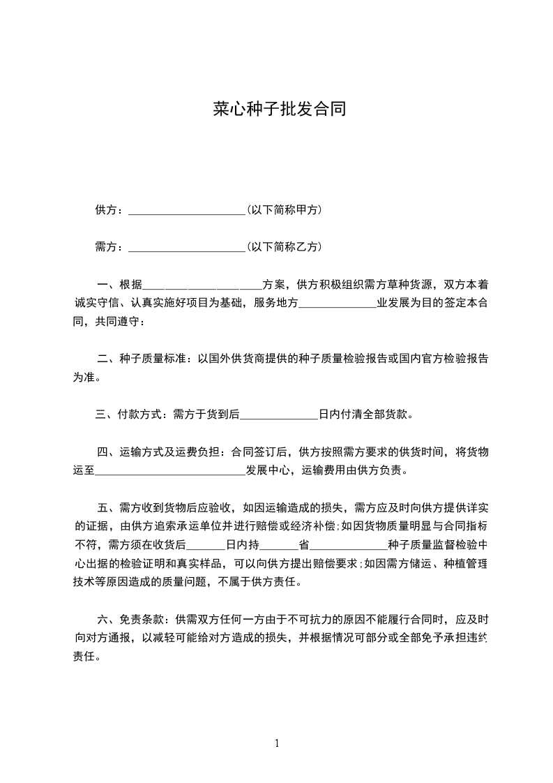 一、根据_____________________方案,供方积极组织需方草种货源,双方本着诚实守信、认真实施好项目为基础,服务地方______________业发展为目的签定本合同,共同遵守: