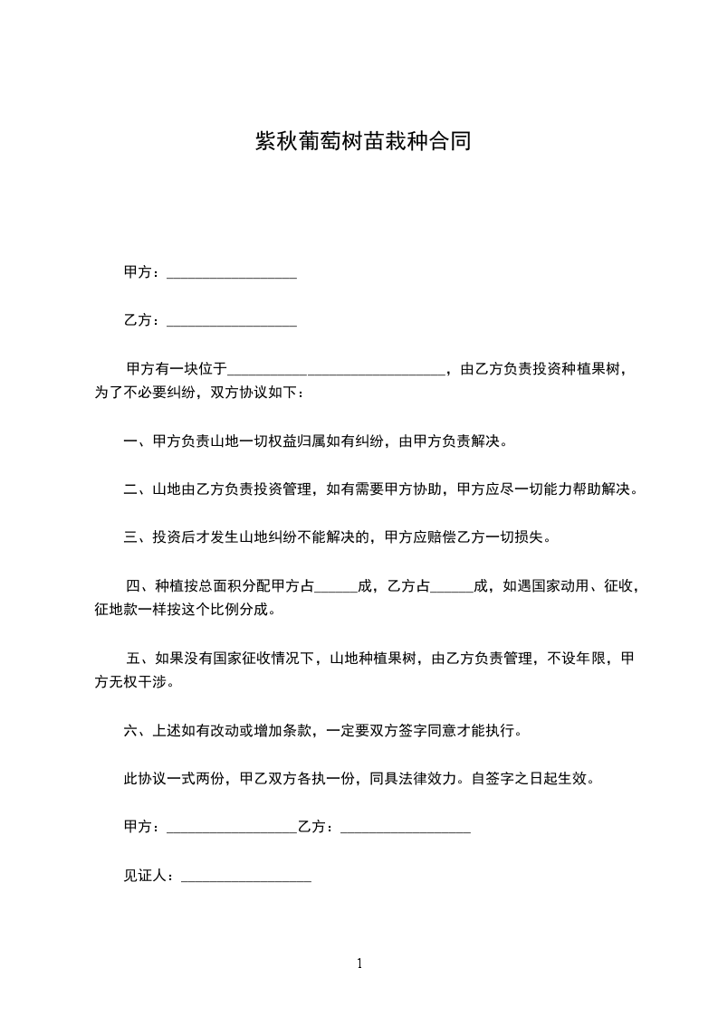 十六、本合同一式二份,双方各执一份,合同有效期_______年_______月_______日至_______年_______月_______日。