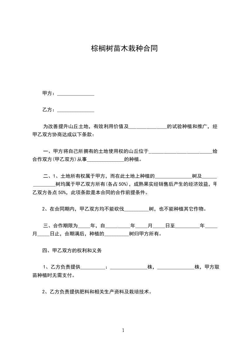 棕榈树苗木栽种合同