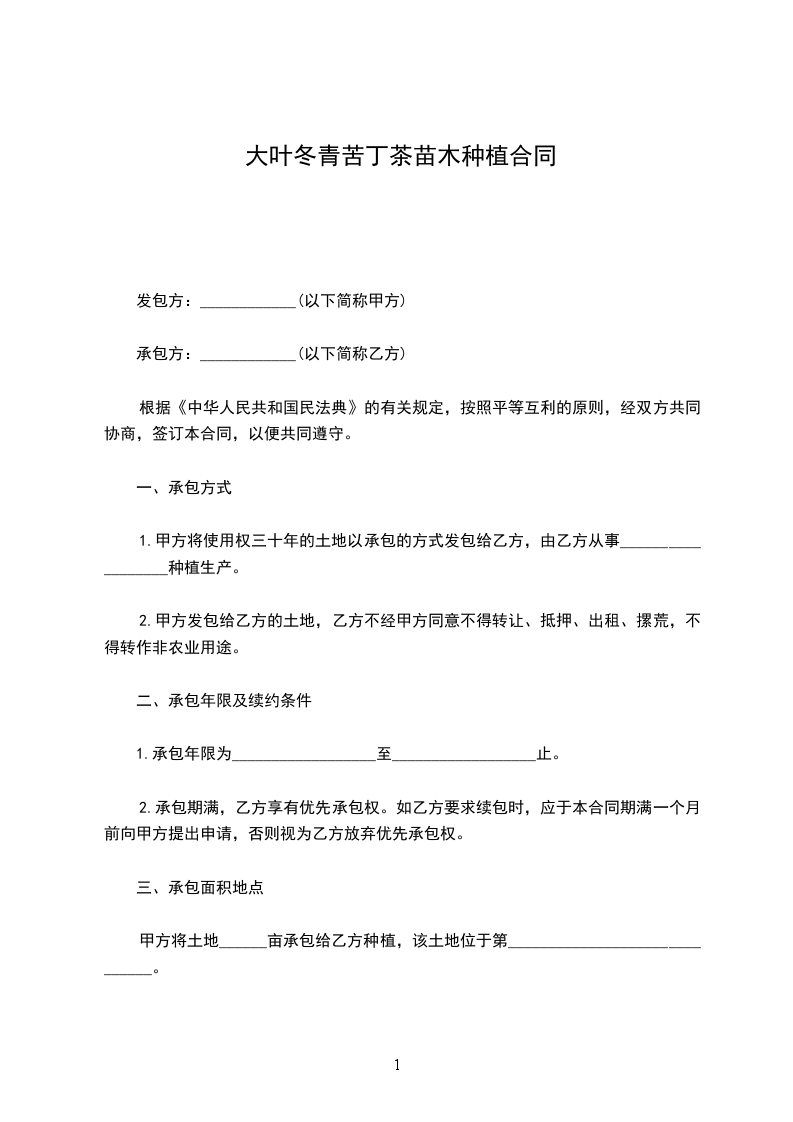 1.甲方将使用权三十年的土地以承包的方式发包给乙方,由乙方从事__________________种植生产。