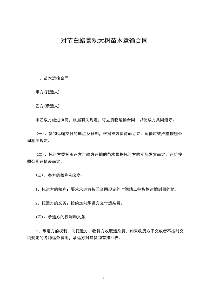 3、甲方调运来的苗木,乙方负责苗木的验收、卸车、修枝及种植。