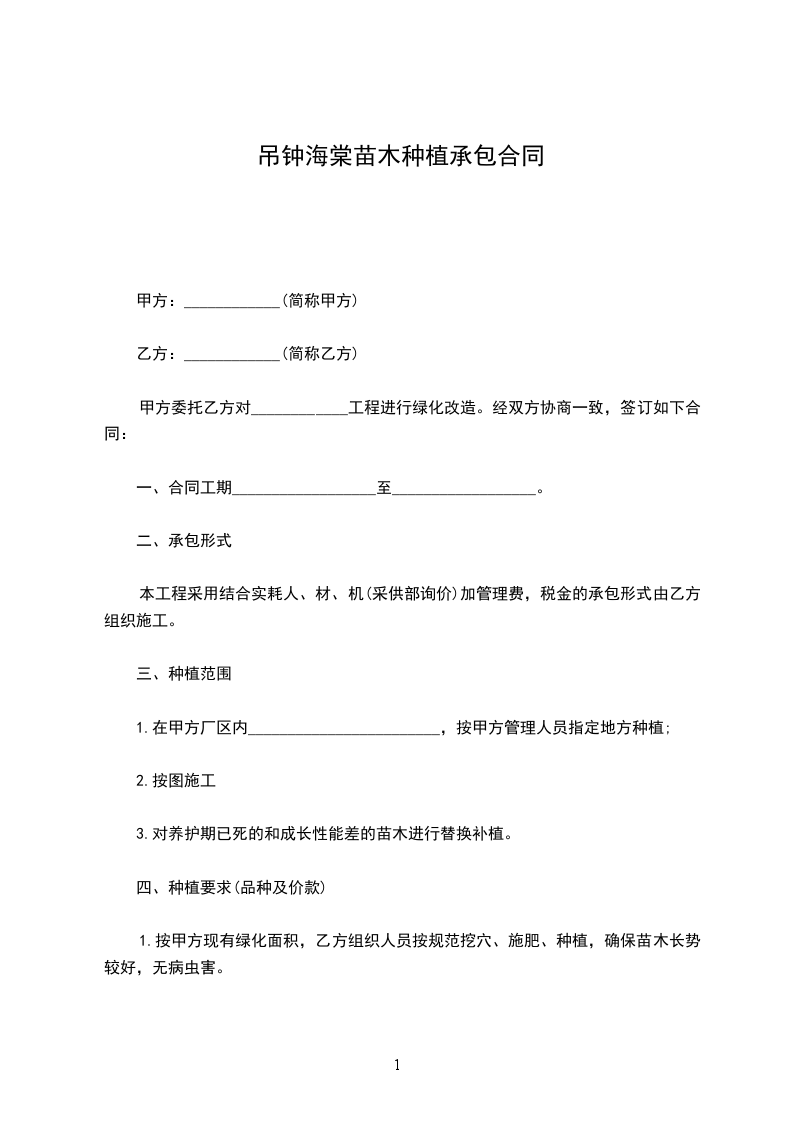 1.按甲方现有绿化面积,乙方组织人员按规范挖穴、施肥、种植,确保苗木长势较好,无病虫害。