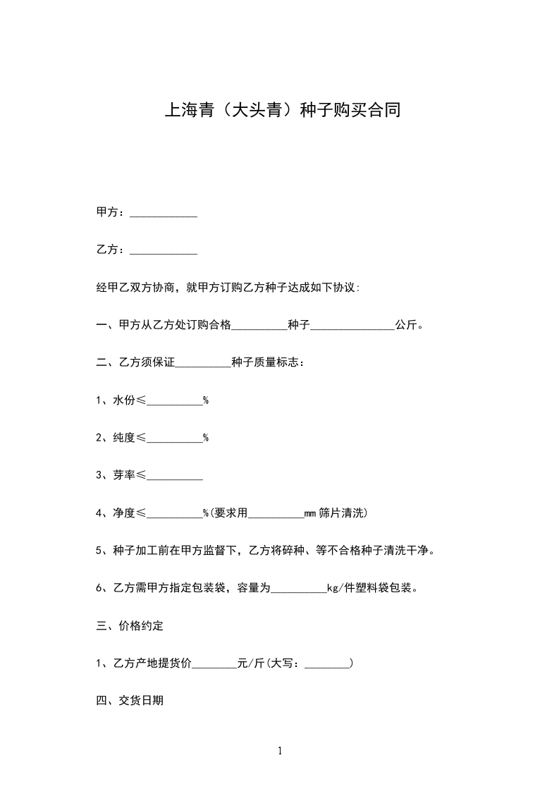 一、甲方从乙方处订购合格__________种子_______________公斤。