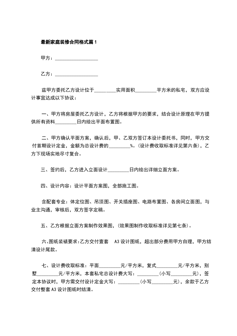 (2)发包人委托承包人设计施工图纸,图纸一式二份,发包人、承包人各一份(详见家庭居室装饰装修工程设计图纸),设计费(大写)__________________元,由发包人支付(此费用不在工程价款内)。