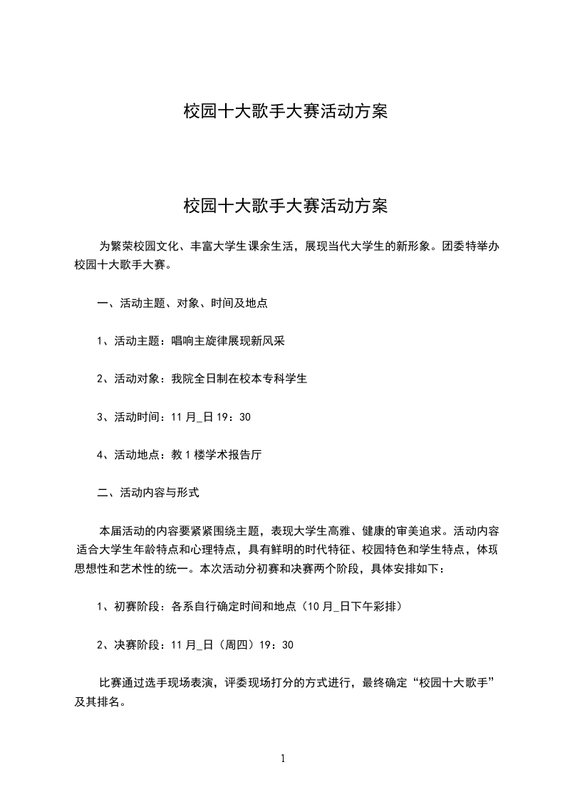 校园十大歌手大赛活动方案