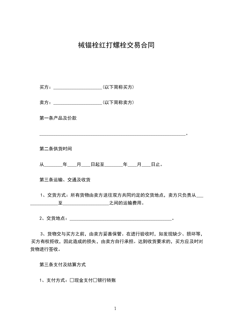 械锚栓红打螺栓交易合同