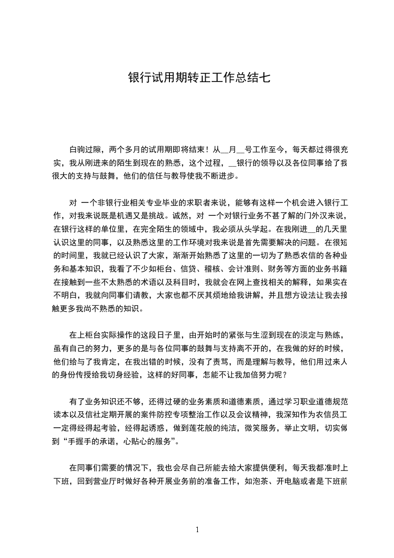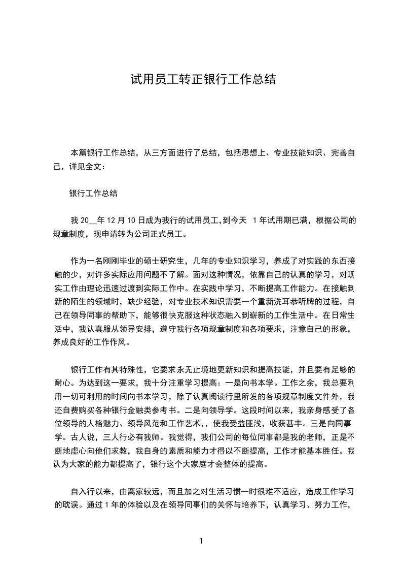 白驹过隙,两个多月的试用期即将结束!从__月__号工作至今,每天都过得很充实,我从刚进来的陌生到现在的熟悉,这个过程,__银行的领导以及各位同事给了我很大的支持与鼓舞,他们的信任与教导使我不断进步。